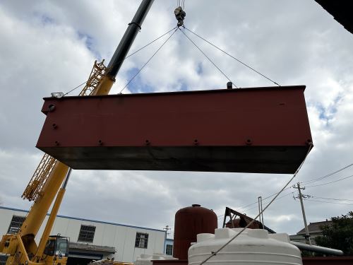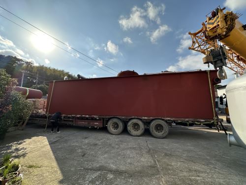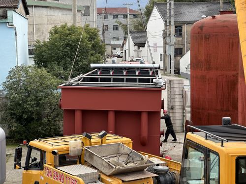 這臺氣浮機(jī)是上海精勝印染有限公司訂購的,用于河水處理,每小時處理水量100噸。